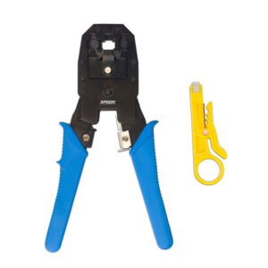 The WJ-315 Modular Network Crimping Tool with ergonomic blue handle is perfect for crimping RJ45 and RJ11 connectors. Durable, easy-to-use tool for networking and telephone cables.